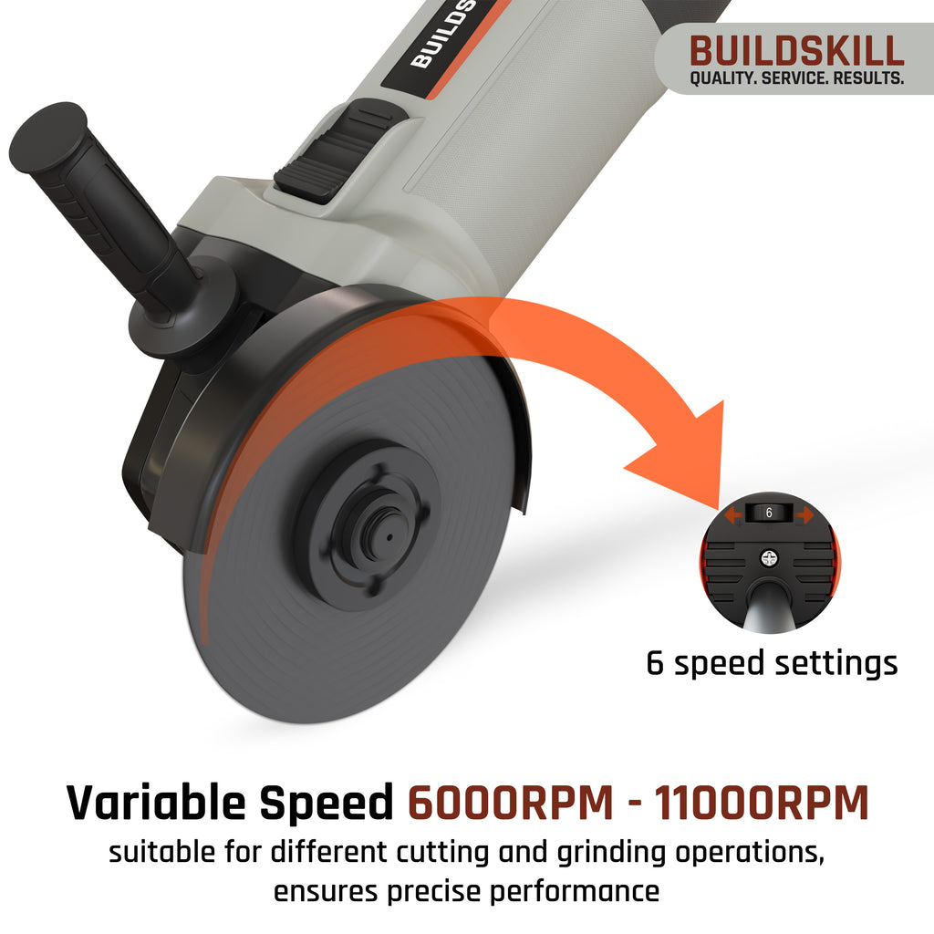 - Powerful Performance: Equipped with an 1100W motor delivering up to 11,000 RPM, perfect for demanding grinding, cutting, and polishing tasks.